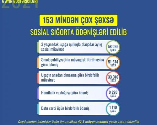Son altı ayda Dövlət Sosial Müdafiə Fondu tərəfindən 153 mindən çox şəxsə sosial sığorta ödənişləri edilib 29 İyul 2021 13:05