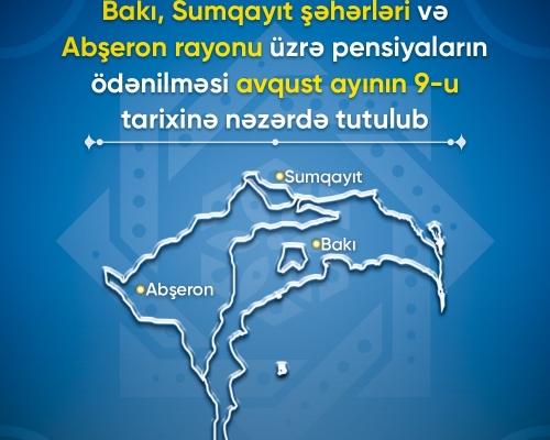 Avqustun 9-da Bakı və Sumqayıt şəhərləri, eləcə də Abşeron rayonu üzrə pensiyaların ödənişinin həyata keçirilməsi nəzərdə tutulub 5 Avqust 2021 10:27