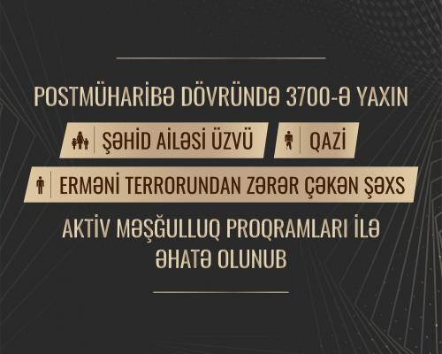 Postmüharibə dövründə 3700-ə yaxın şəhid ailəsi üzvü, qazi, erməni terrorundan zərər çəkən şəxslər aktiv məşğulluq proqramları ilə əhatə olunub 13 Mart 2021 10:40