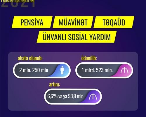 Bu ilin ilk rübündə sosial təminat növləri üzrə əhaliyə ötən ilin eyni dövrünə nisbətən 6,6% çox olmaqla 1 milyard 523 milyon manat vəsait ödənilib 15 Aprel 2021 16:26