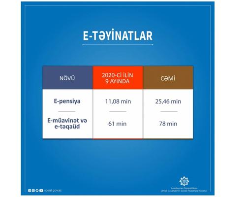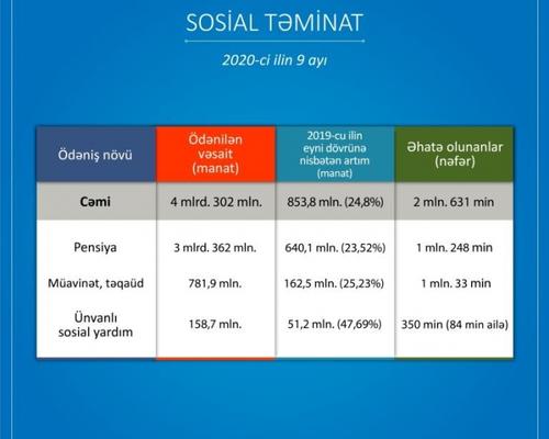 Yanvar-sentyabr aylarında 2 milyon 631 min şəxsə pensiya, müavinət, təqaüd, ünvanlı sosial yardım verilib 7 Oktyabr 2020 17:34