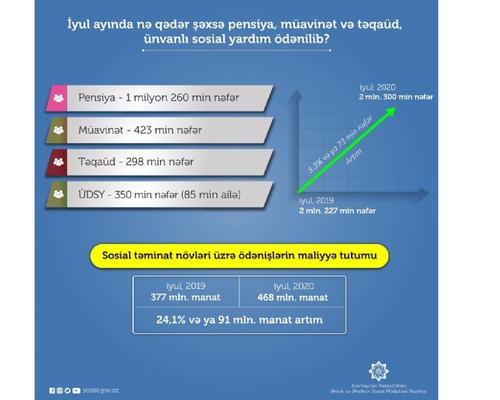 Ötən ay 2 milyon 300 min nəfərə pensiya, müavinət, təqaüd və ünvanlı sosial yardım ödənilib 6 Avqust 2020 16:57