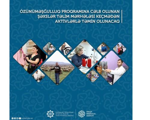Özünüməşğulluq proqramına cəlb olunan şəxslər təlim mərhələsi keçmədən aktivlərlə təmin olunacaqlar 10 Avqust 2020 16:03