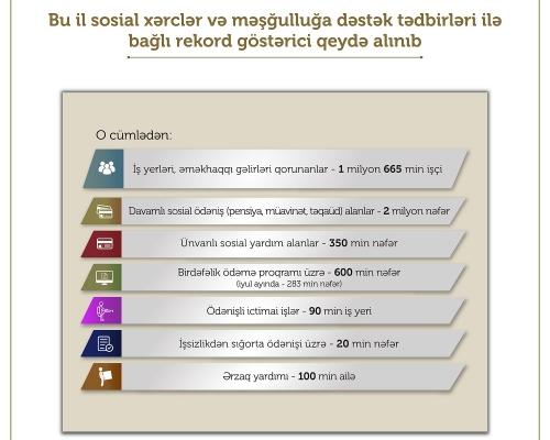 Bu il sosial xərclər və məşğulluğa dəstək tədbirləri ilə bağlı rekord göstərici qeydə alınıb 11 Avqust 2020 12:14