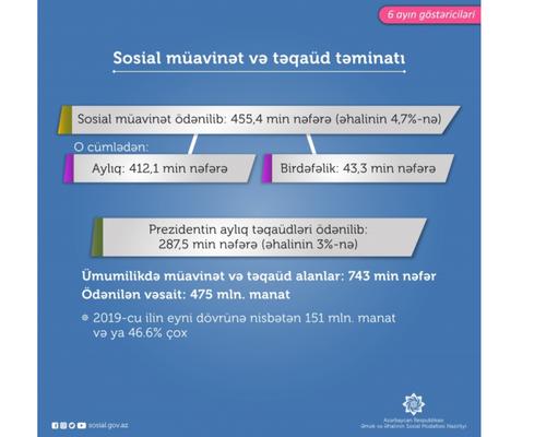 Bu ilin altı ayında 455,4 min nəfərə müavinət, 287,5 min nəfərə Prezidentin aylıq təqaüdü ödənilib 28 İyul 2020 13:55