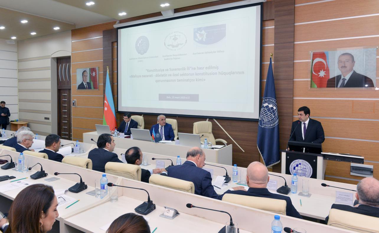 Bu sözləri UNEC-də keçirilən “Konstitusiya və Suverenlik İli”nə həsr edilmiş “Maliyyə nəzarəti - dövlətin və özəl sektorun konstitusion hüquqlarının qorunmasının təminatçısı kimi” mövzusunda konfransda İqtisadiyyat Nazirliyi yanında Dövlət Vergi Xidmətinin rəisi (DVX) Orxan Nəzərli deyib. DVX rəisi vurğulayıb ki, ölkənin yeni strateji inkişaf dövründə iqtisadiyyatın davamlılığının təmin edilməsi, böyüməsi və artım sürətinin yüksəlməsi üçün maliyyə-vergi siyasəti, uçot sisteminin çevik hədəflərə adaptasiya oluna bilən nəticəyönümlüyü artmaqdadır.