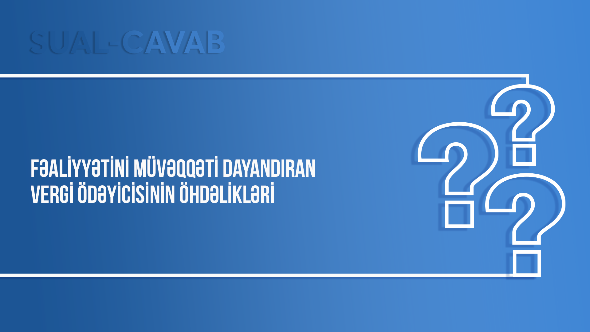 Fəaliyyətini müvəqqəti dayandıran vergi ödəyicisinin öhdəlikləri