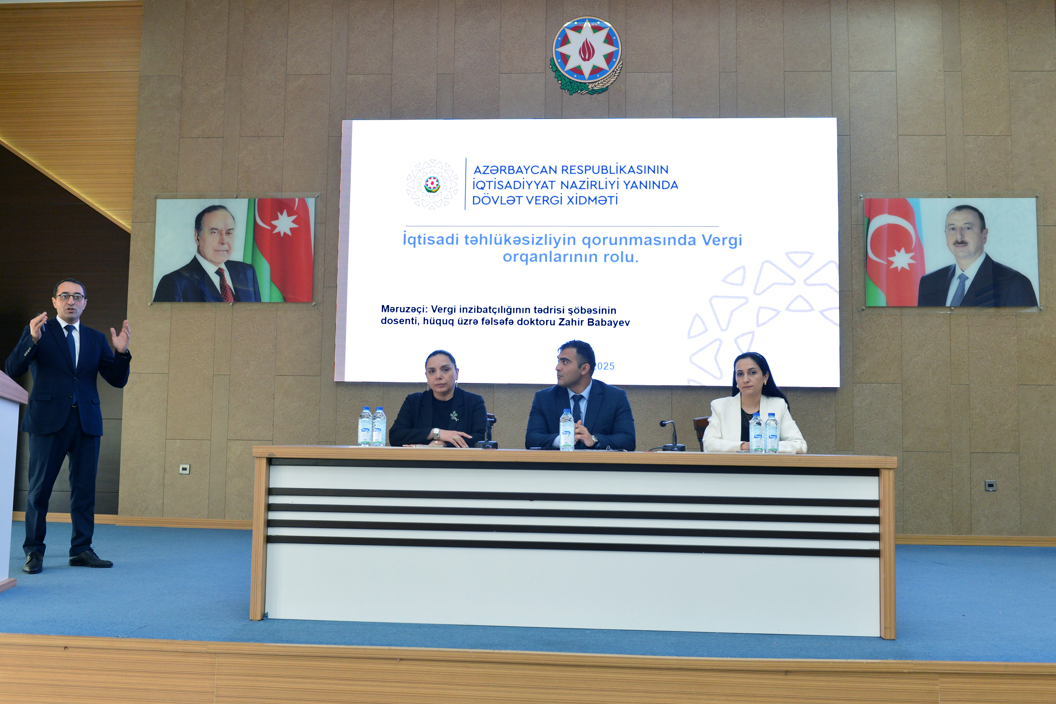Görüşdə DVX-nin İnsan resursları baş idarəsinin əməkdaşları tələbələrə Yay Təcrübə Proqramı barədə ətraflı məlumat veriblər. Həmçinin vergi orqanlarının fəaliyyəti barədə məlumatlılığın və vergi savadlılığının artırılması məqsədilə DVX-nin Tədris Mərkəzinin nümayəndələri tərəfindən “Azərbaycan Respublikasının Vergi sistemi” və ”İqtisadi təhlükəsizliyin qorunmasında vergi orqanlarının rolu" mövzularında təqdimatlar edilib.