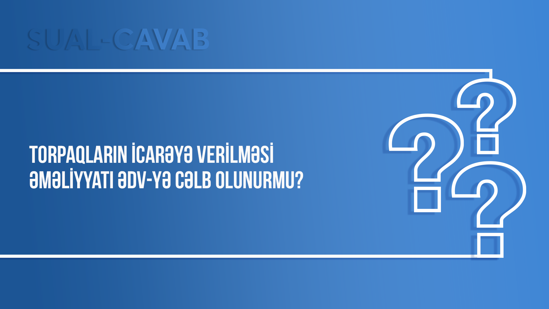 İqtisadiyyat Nazirliyi yanında Dövlət Vergi Xidmətindən bildirilib ki, Vergi Məcəlləsinin 159.1-ci maddəsinin müddəalarına əsasən, malların təqdim olunması, işlərin görülməsi, xidmətlərin göstərilməsi ƏDV-nin vergitutma obyektini təşkil edir. 2025-ci il yanvarın 1-dən Vergi Məcəlləsinin 13.2.11-ci maddəsində edilmiş dəyişikliyə əsasən, ƏDV-nin məqsədləri üçün torpaqdan istifadə hüququnun başqasına verilməsi və torpağın icarəyə verilməsi xidmət (iş) anlayışında istisna edilib.
