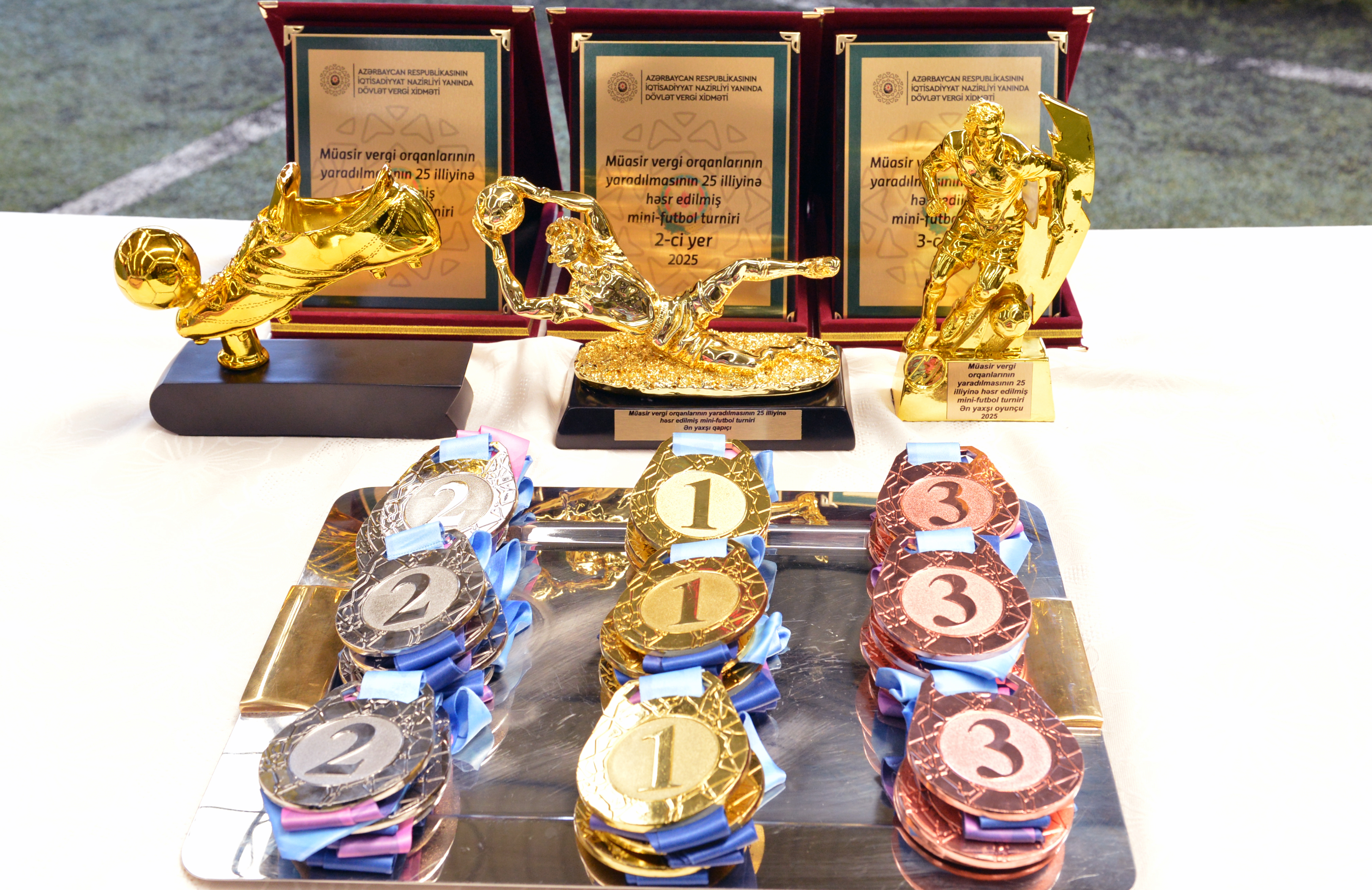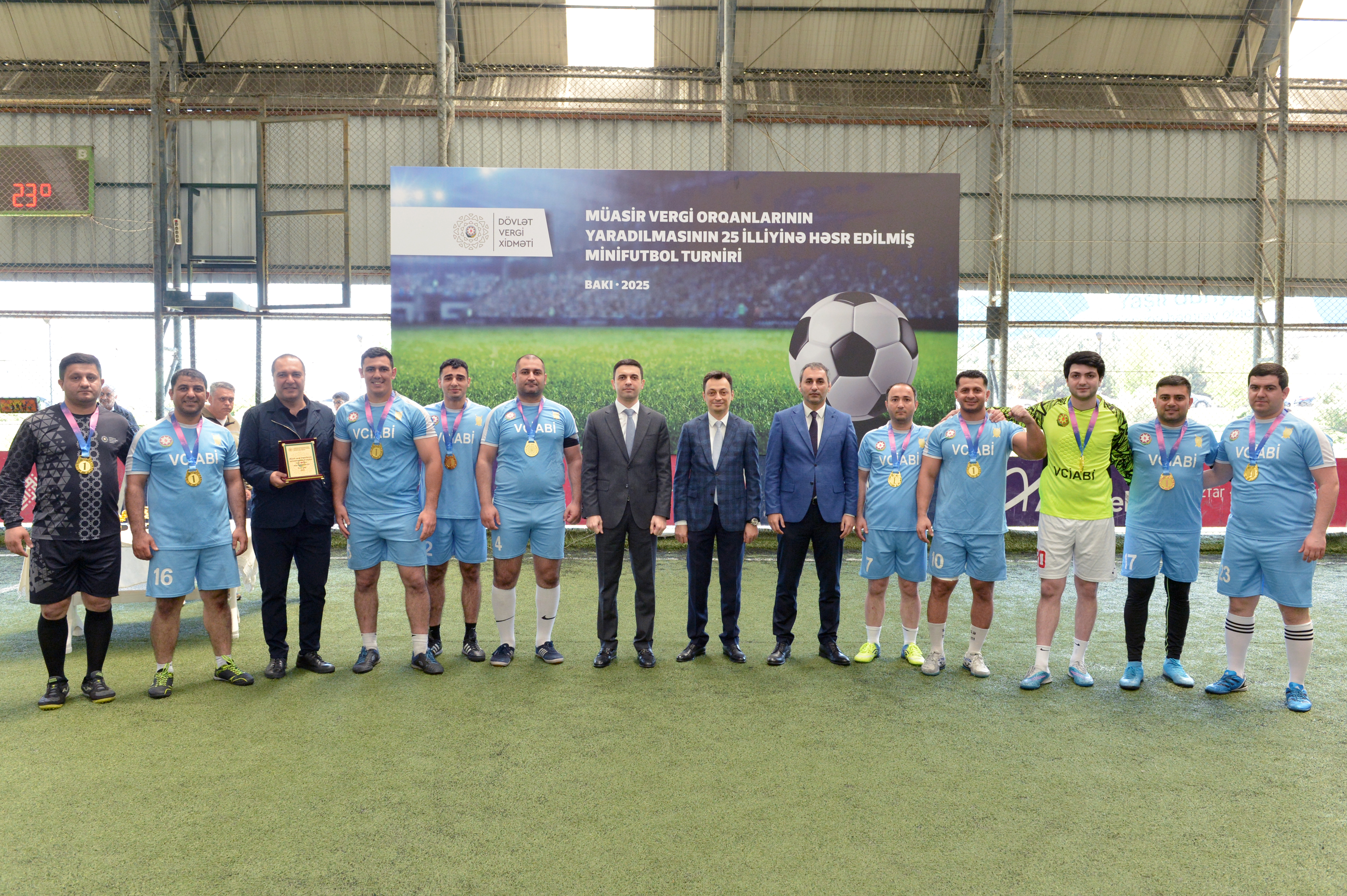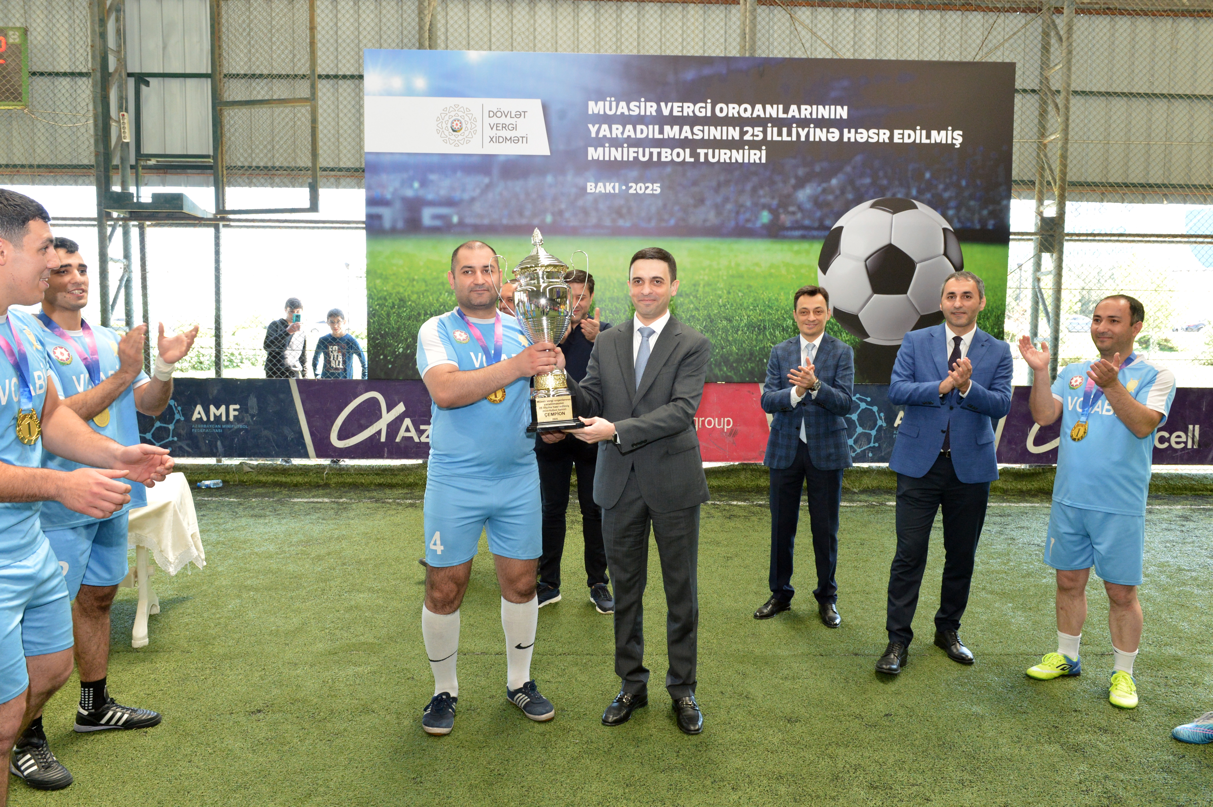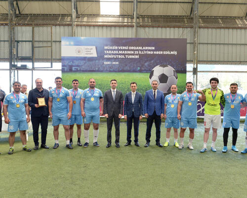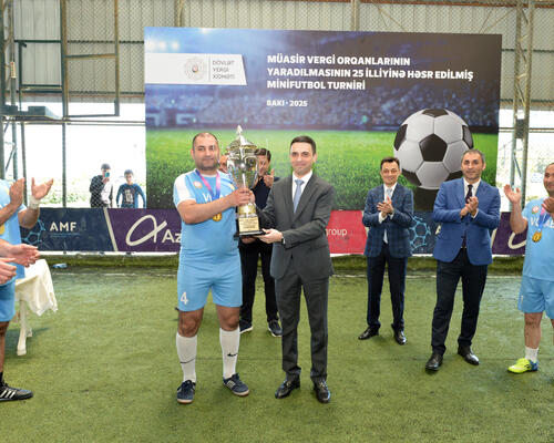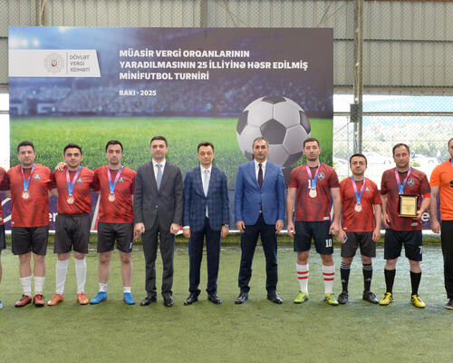 İqtisadiyyat Nazirliyi yanında Dövlət Vergi Xidmətinin (DVX) təşkilatçılığı ilə müasir vergi orqanlarının yaradılmasının 25 illiyinə həsr edilmiş minifutbol turniri başa çatıb. Qaliblərə kubok, qiymətli hədiyyələr və DVX Birləşmiş Həmkarlar İttifaqı Komitəsinin Fəxri fərmanları təqdim edilib. Bununla yanaşı, turnirdə müxtəlif kateqoriyalar üzrə fərqlənən oyunçular da təltif olunublar.