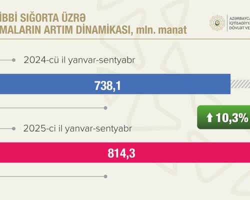 İcbari tibbi sığorta haqları üzrə daxilolmalar ötən ilin eyni dövrünə nisbətən 10,3 faiz artıb və 814,3 milyon manatdan çox təşkil edib. Qeyri-büdcə təşkilatları üzrə daxilolmalar 9,9 faiz artaraq 576,8 milyon manat olub.