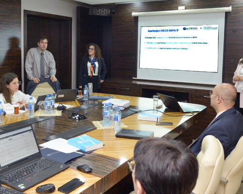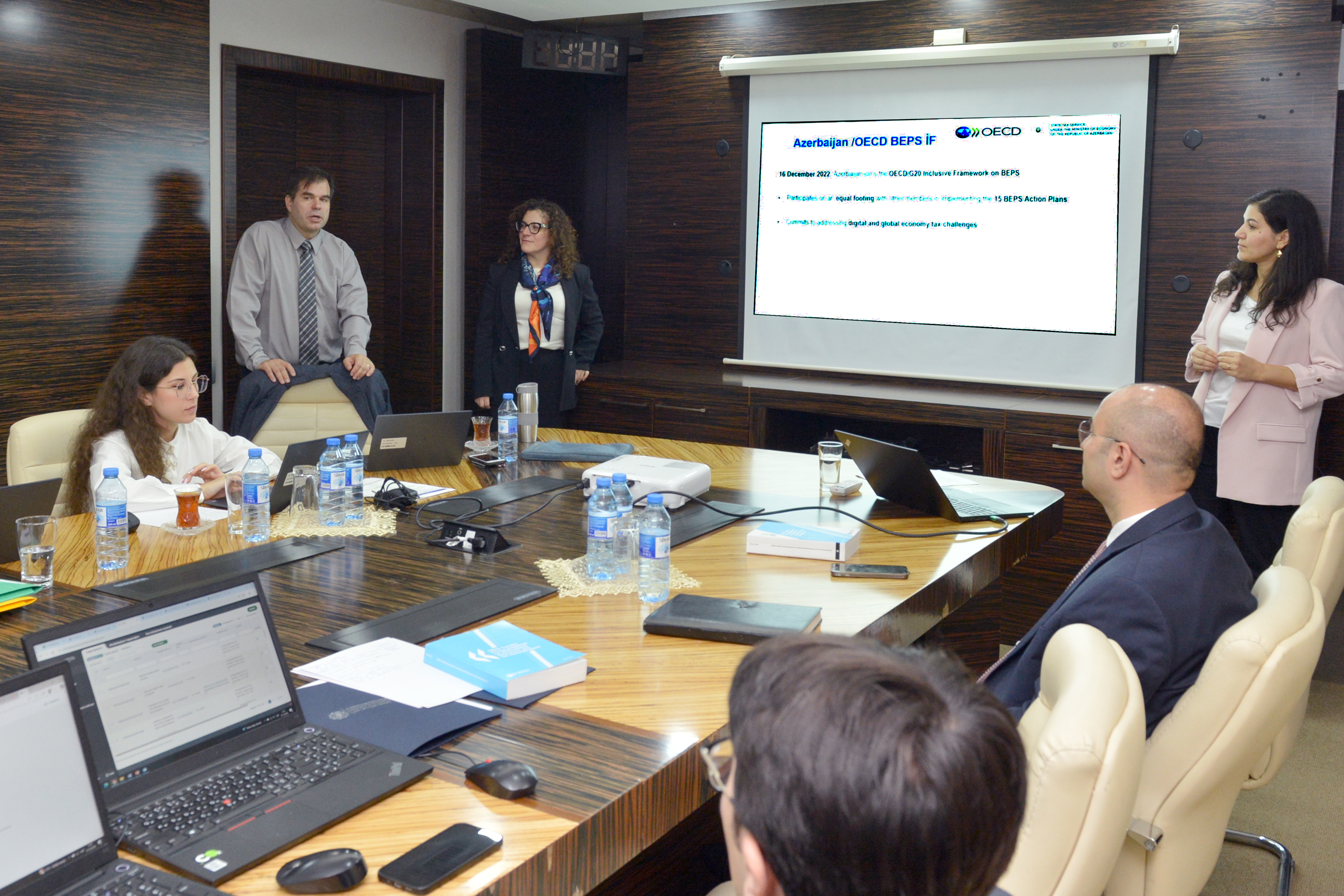 İqtisadi Əməkdaşlıq və İnkişaf Təşkilatının (İƏİT) nümayəndə heyəti “Vergitutma bazasının aşınması və mənfəətin süni şəkildə köçürülməsi (BEPS) layihəsi üzrə giriş proqramı və transfer qiymətlərinin tətbiqi” mövzusunda təlimlərin keçirilməsi məqsədilə İqtisadiyyat Nazirliyi yanında Dövlət Vergi Xidmətində olub.