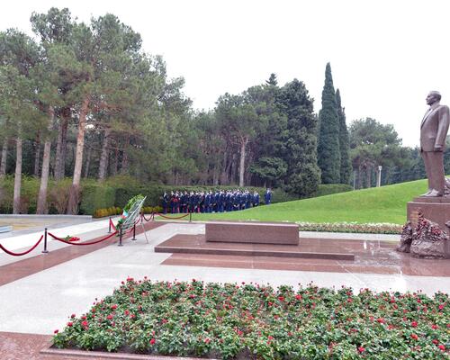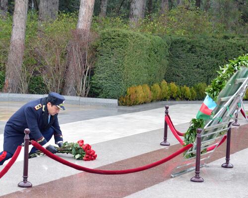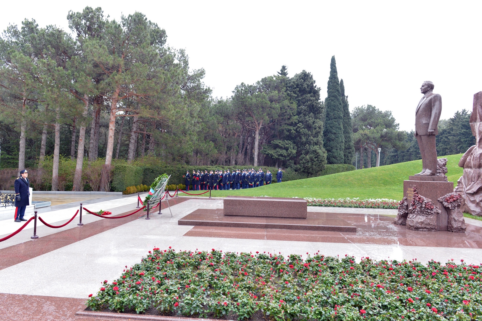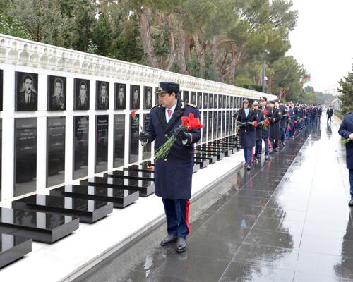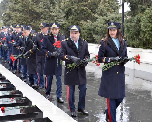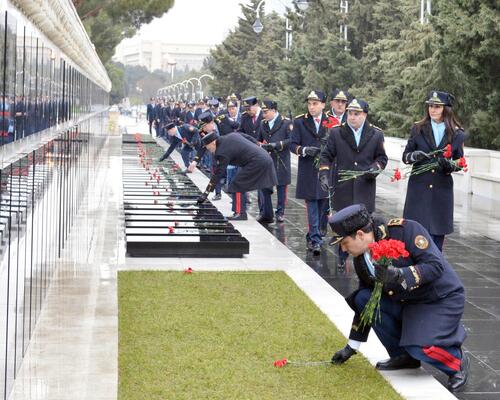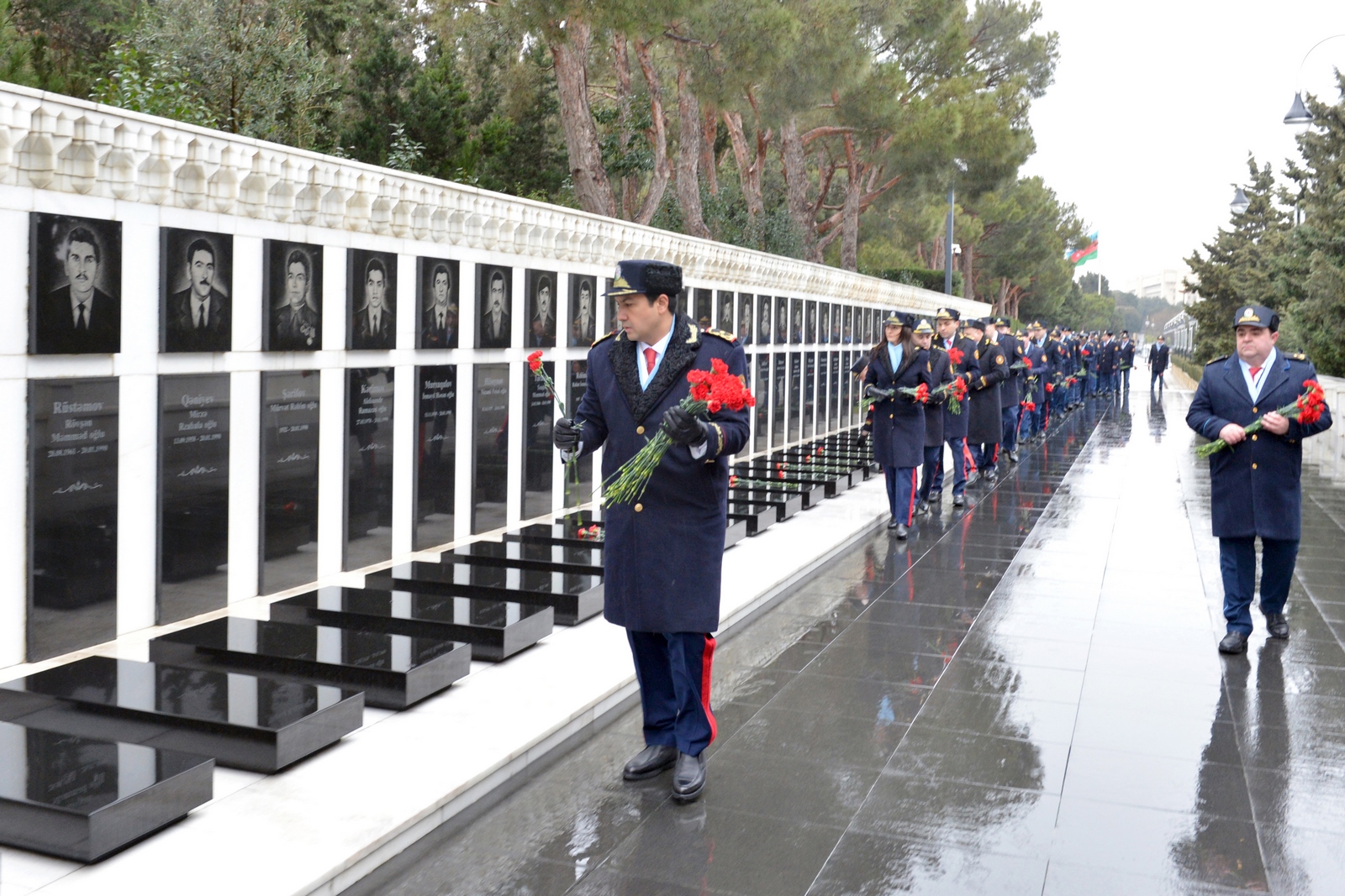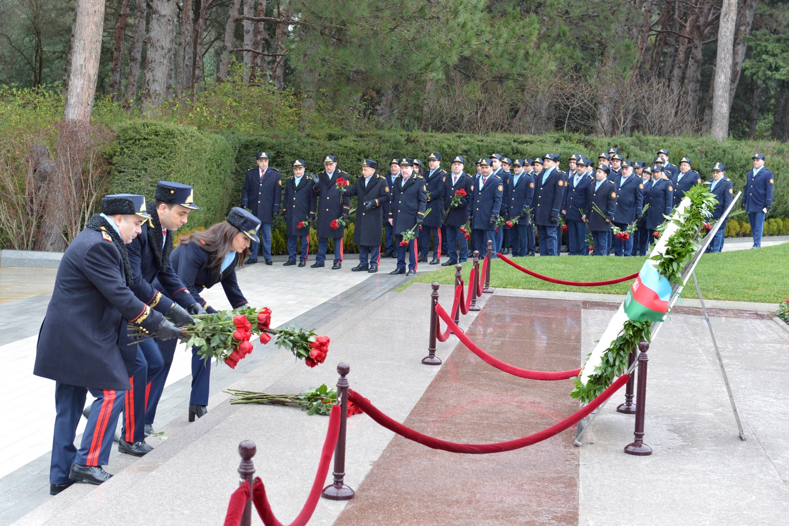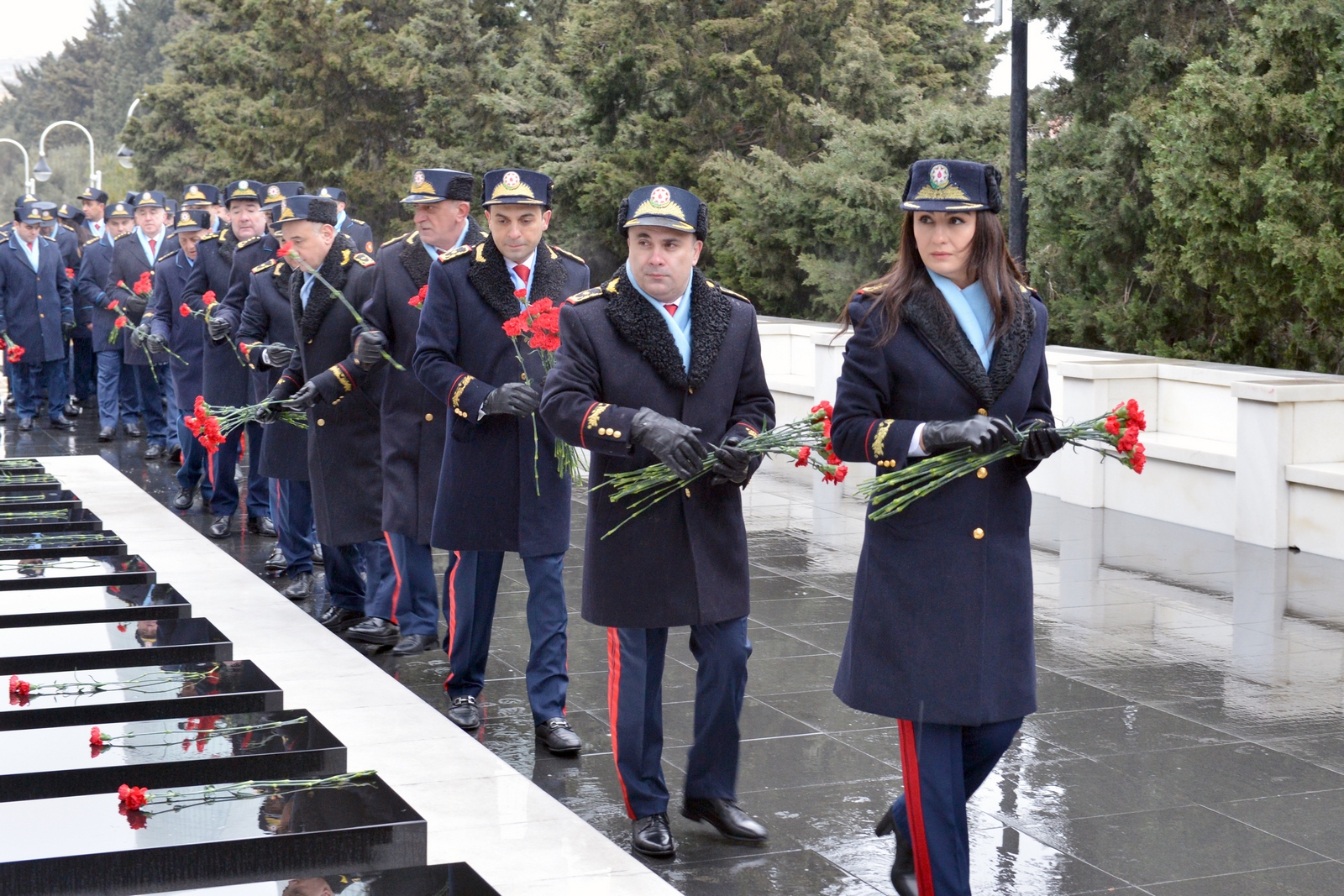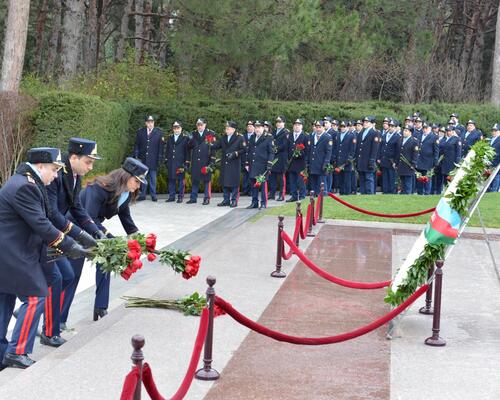 Daha sonra Xidmətin əməkdaşları Şəhidlər xiyabanında Azərbaycanın müstəqilliyi və ərazi bütövlüyü uğrunda canlarından keçmiş qəhrəmanlarımızı yad edib, məzarların üzərinə al qərənfillər düzüblər. "Əbədi Məşəl" abidə kompleksinin önünə əklil qoyulub.