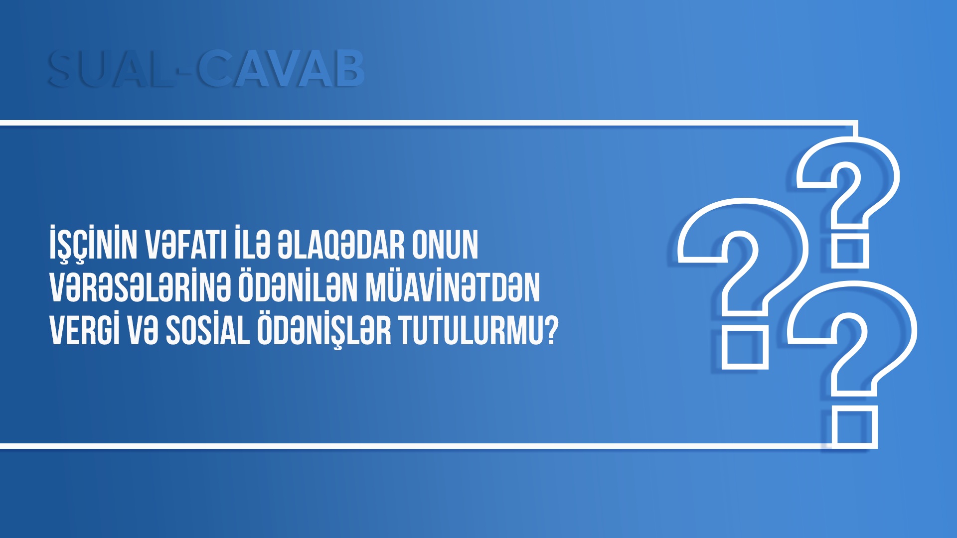 İqtisadiyyat Nazirliyi yanında Dövlət Vergi Xidmətindən bildirilib ki, Əmək Məcəlləsinin 77-ci maddəsinin 7-ci bəndinə əsasən, işçinin vəfatı ilə əlaqədar əmək müqaviləsinə xitam verildikdə vəfat edənin vərəsələrinə orta aylıq əməkhaqqının azı üç misli miqdarında müavinət ödənilir.