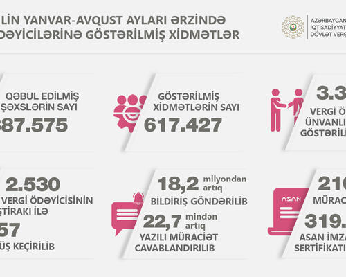 Naxçıvanda vergi ödəyicilərinə xidmət mərkəzlərində 40 mindən çox xidmət göstərilib 9 Sentyabr 2025 11:49