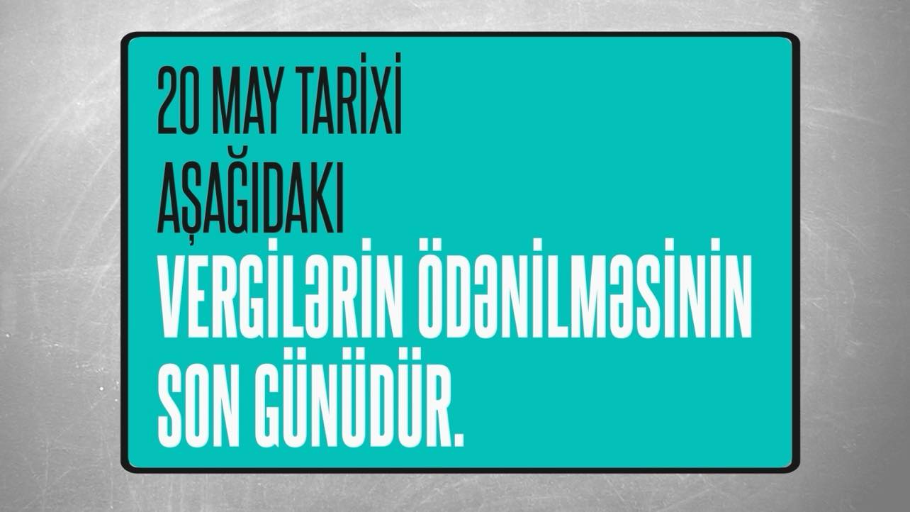 20.05.2025-ci il tarixi bir sıra vergilərin ödənilməsinin son günüdür!