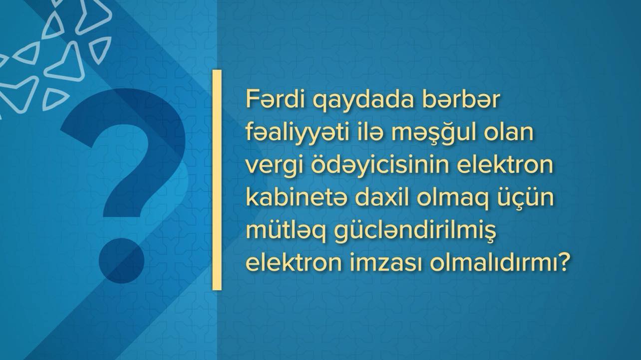 Fərdi qaydada bərbər fəaliyyəti ilə məşğul olan vergi ödəyicisinin elektron kabinetə daxil olmaq üçün mütləq gücləndirilmiş elektron imzası olmalıdırmı?