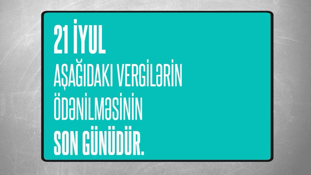 21.07.2025-ci il tarixi bir sıra vergilərin ödənilməsinin son günüdür!