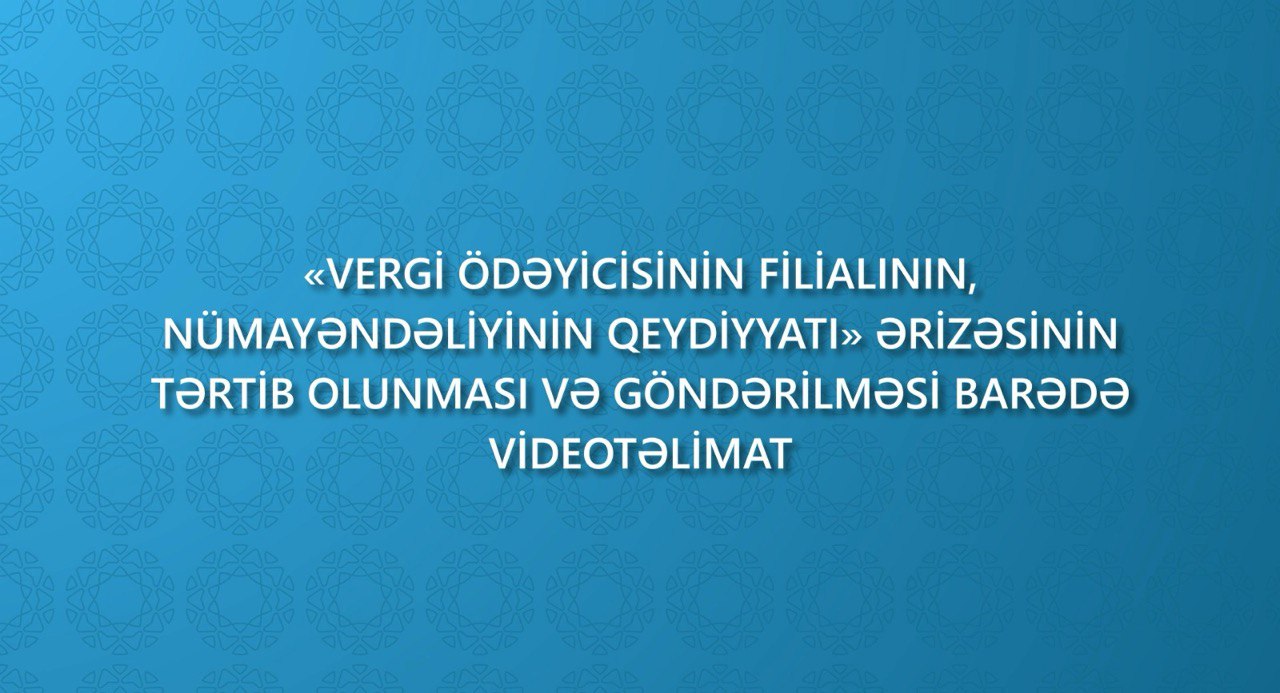 İqtisadiyyat Nazirliyi yanında Dövlət Vergi Xidməti vergi ödəyicilərinə dəstək məqsədilə “Vergi ödəyicisinin filialının, nümayəndəliyinin onlayn qeydiyyatı” ərizəsinin təqdim olunması qaydalarını əks etdirən videotəlimat hazırlayıb. Təlimatda müraciətin tərtib və təqdim edilməsi prosesi ətraflı izah olunur.