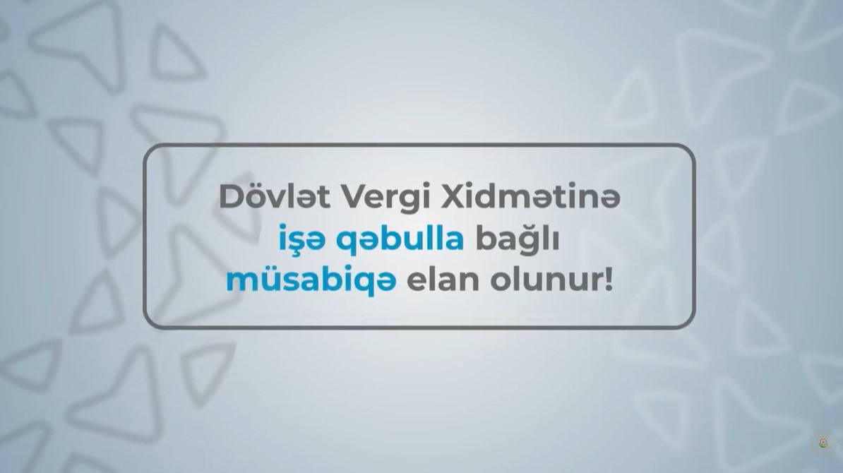 Dövlət vergi orqanlarına xidmətə qəbul “Azərbaycan Respublikasının 12 iyun 2001-ci il tarixli 141-IIQ nömrəli Qanunu ilə təsdiq edilmiş “Dövlət vergi orqanlarında xidmət haqqında Əsasnamə”yə, Azərbaycan Respublikası Prezidentinin 15 aprel 2005-ci il tarixli 222 nömrəli Fərmanı ilə təsdiq edilmiş “Dövlət vergi orqanlarına işə qəbul olunmaq üçün namizədlərin müsabiqəsinin keçirilməsi haqqında Əsasnamə”yə və Azərbaycan Respublikasının İqtisadiyyat Nazirliyi yanında Dövlət Vergi Xidmətinin 18.03.2022-ci il tarixli 2217040100301500 nömrəli əmri ilə təsdiq edilmiş “Dövlət vergi orqanlarına işə qəbul olunmaq üçün namizədlərin sənədlərinin toplanması, vakant vəzifələrin tutulması üçün kadr ehtiyatının formalaşdırılması və idarə edilməsi Qaydaları”na müvafiq olaraq aparılır.