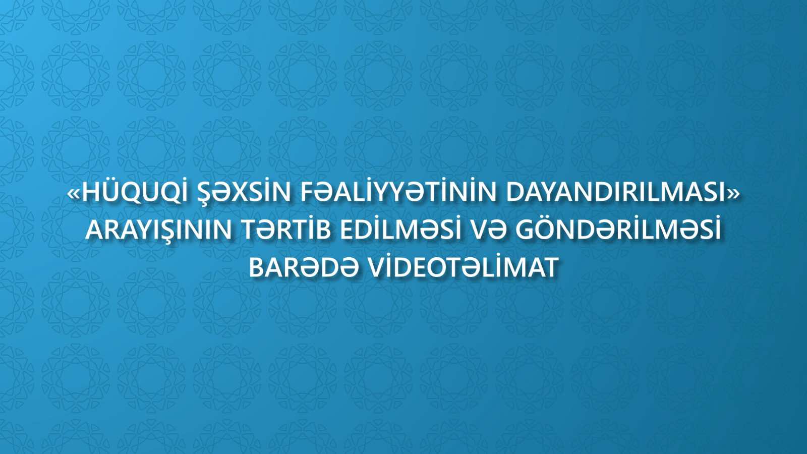 İqtisadiyyat Nazirliyi yanında Dövlət Vergi Xidməti tərəfindən vergi ödəyicilərinə dəstək məqsədilə "Hüquqi şəxsin fəaliyyətinin dayandırılması" arayışının təqdim olunması qaydalarını əks etdirən videotəlimat hazırlanıb.