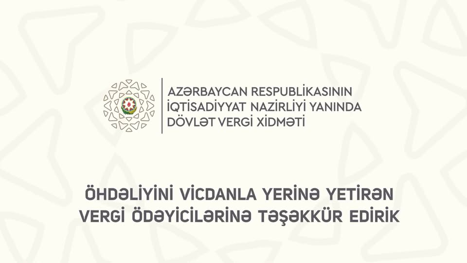 Öhdəliyini vicdanla yerinə yetirən vergi ödəyicilərinə təşəkkür edirik