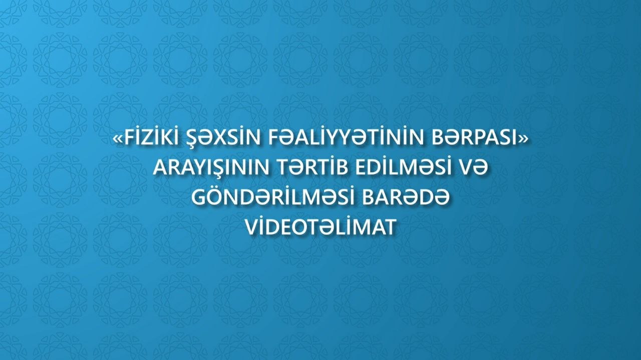 İqtisadiyyat Nazirliyi yanında Dövlət Vergi Xidməti tərəfindən vergi ödəyicilərinə dəstək məqsədilə "Fiziki şəxsin fəaliyyətinin bərpası" arayışının təqdim olunması qaydalarını əks etdirən videotəlimat hazırlanıb.