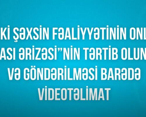 "Fiziki şəxsin fəaliyyətinin onlayn bərpası ərizəsi"nin tərtib olunması VİDEO