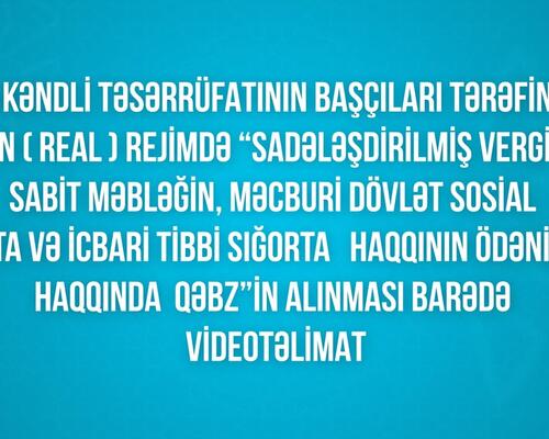 Ailə kəndli təsərrüfatının başçıları tərəfindən onlayn rejimdə müvafiq qəbzin alınması VİDEO