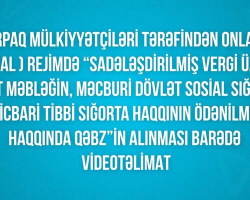 Sadələşdirilmiş vergi üzrə sabit məbləğin, MDSS və İTS haqqının ödənilməsi haqqında qəbz VİDEO