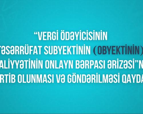 “Vergi ödəyicisinin təsərrüfat subyektinin (obyektinin) fəaliyyətinin bərpa ərizəsi” ilə bağlı videotəlimat hazırlanıb