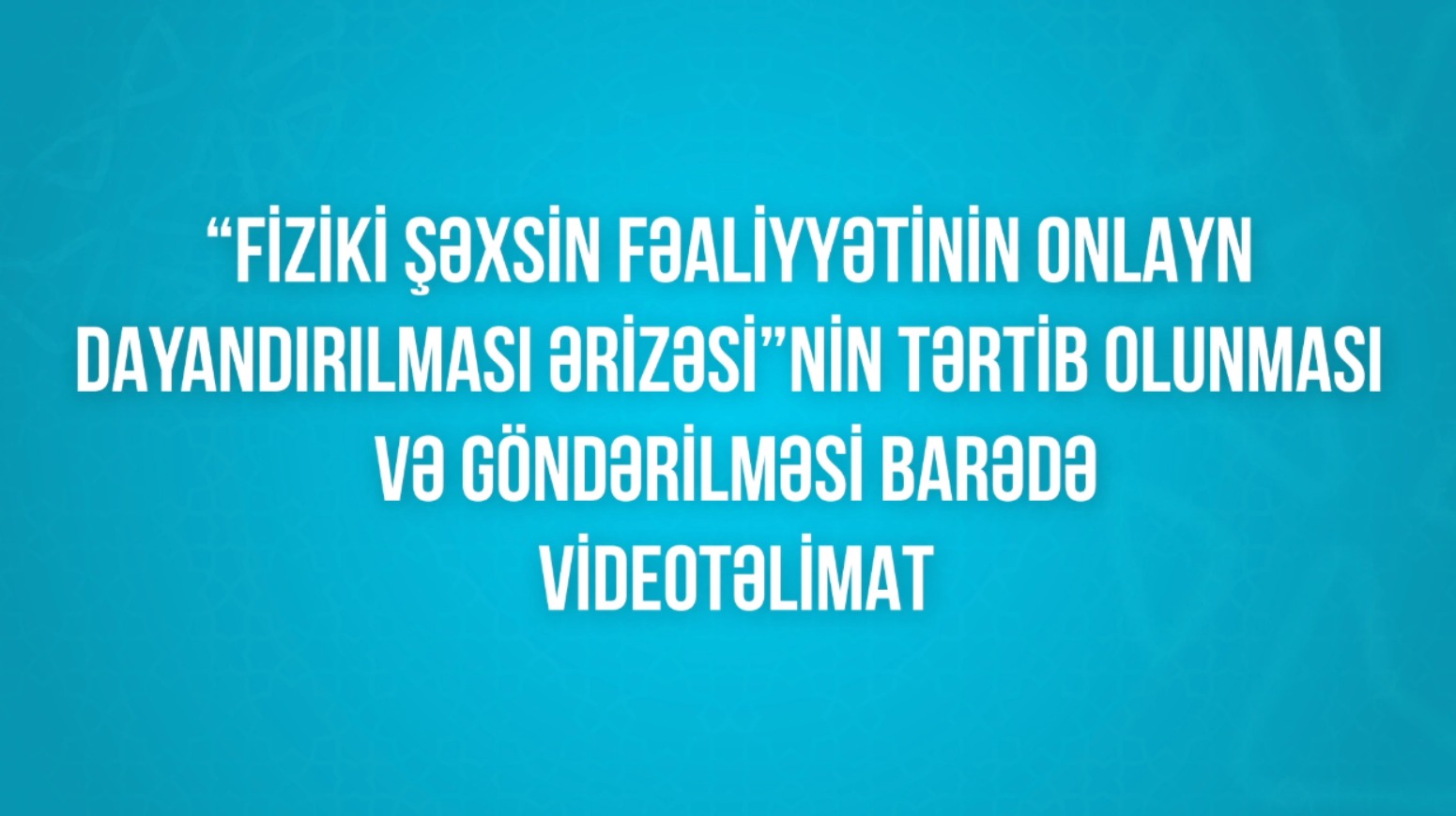 "Fiziki şəxsin fəaliyyətinin onlayn dayandırılması ərizəsi"nin tərtib olunması və göndərilməsi barədə videotəlimat.