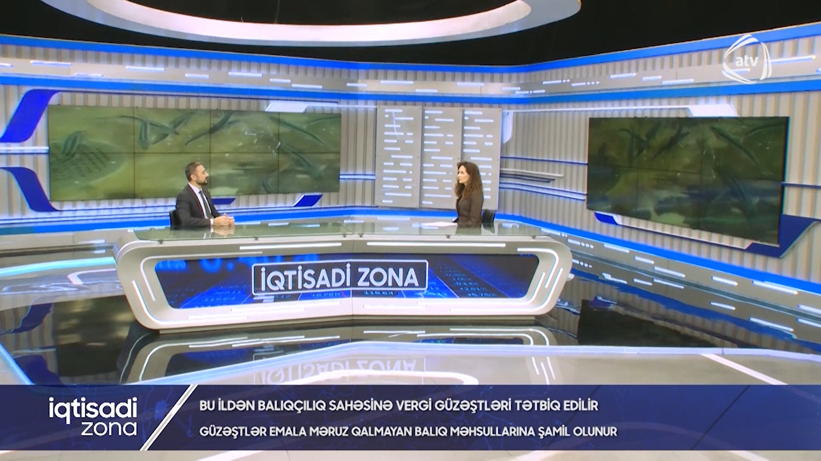 Bu və digər xəbərlərlə İqtisadiyyat Nazirliyi yanında DVX-nin ATV kanalı ilə birgə layihəsi olan "İqtisadi zona" proqramının 1 fevral 2026-cı il tarixli buraxılışında tanış ola bilərsiniz. Verilişin qonağı Balıqçılıq və akvakultura mərkəzinin direktoru Ceyhun Əliyev Günel Bəhramqızının suallarını cavablandırıb.